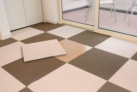 タイルカーペットだと1枚1枚はがせるので丸洗いも出来ます。
